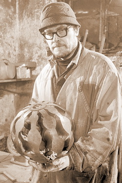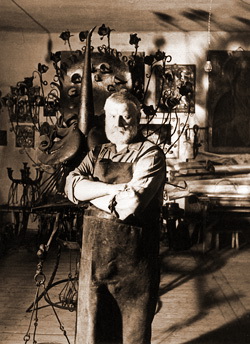 Всеволод Петрович Смирнов около произведений своего кузнечного искусства. 1976 г. Фото: Р. Кучеров