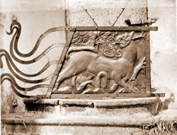 | Полотнище прапора Власьевской башни. Лицевая сторона 2: Барс побеждающий. Автор В. П. Смирнов. Фото М. И. Семенова, 1966 г. |