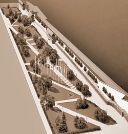 | Проект реконструкции набережной реки Великой от Ольгинского моста до моста им. 50-летия Октября в Пскове. Фрагмент. Сквер породненных городов. |